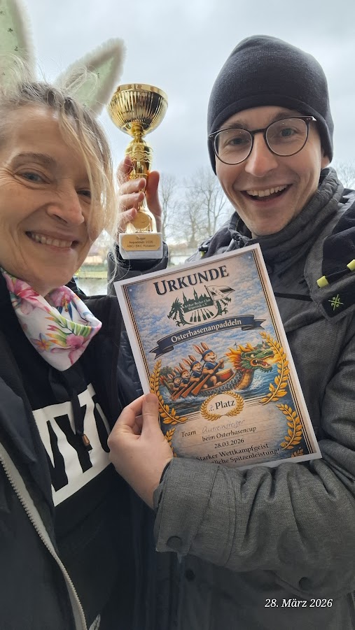 Fazit: Das 18. Osterhasen-Anpaddeln war eine rundum gelungene Veranstaltung. Vielen Dank an alle Paddlerinnen und Paddler, an unseren Steuermann und Team Captain Harald, an die Veranstalter für die tolle Organisation und alle helfenden Hände.